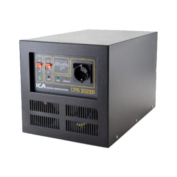 ICA UPS 1022B Capacity 1200 VA, inverter only works when the AC input voltage is low or loss. When the AC input voltage is in normal condition, ICA UPS will stabilize and filter the AC input voltage and supply a clean and stable AC voltage to the ICA UPS output and charge the battery. When the AC input voltage is low or loss, inverter will replace it and supply a stable AC voltage within a very short transfer time.